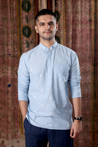 6. Sky Blue Dobby South Cotton Men's Short Kurta