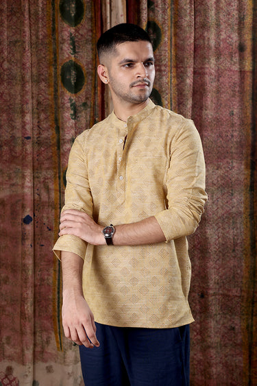 7. Mustard Sanganeri Amber Cotton Men's Short Kurta