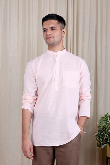 10. Light Pink Hand Dyed Cotton Linen Men's Short Kurta
