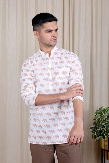 2. Beige Sanganeri Cotton Flax Men Short Kurta