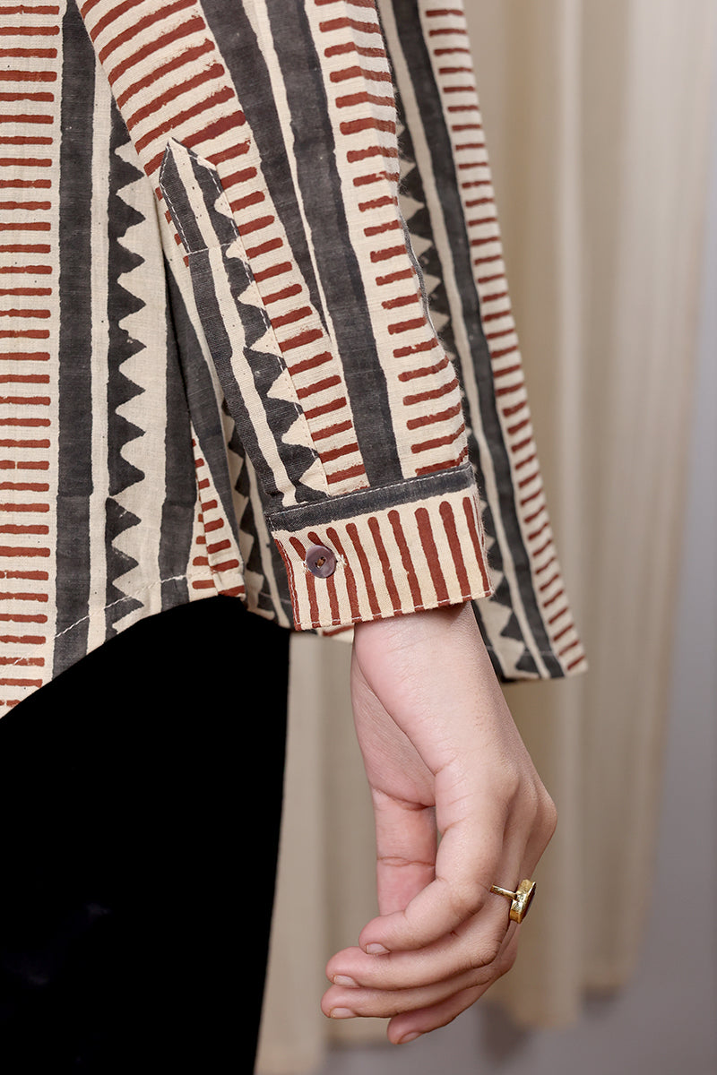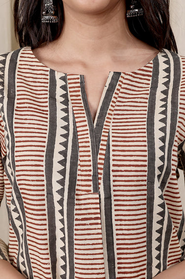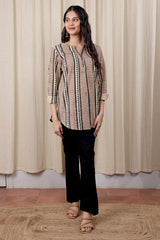 Grey Bagru Cotton Flax Women Kurti Long Sleeves WKILS252C14