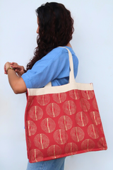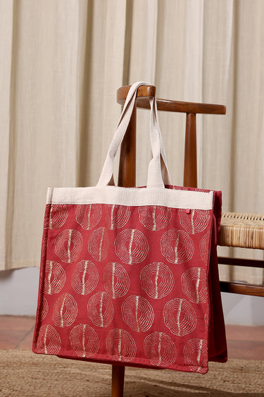Rust Hand Block Print Duck Cotton Tote Bag TOTBG252C19