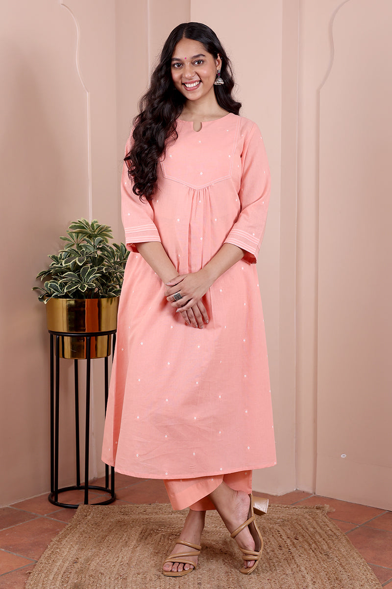 Rose Pink Hand Dyed Chanderi Silk Women Long Kurta Long Sleeves WLKLS252C172
