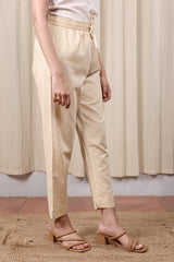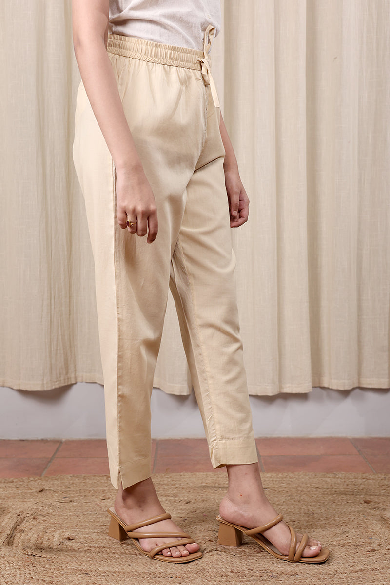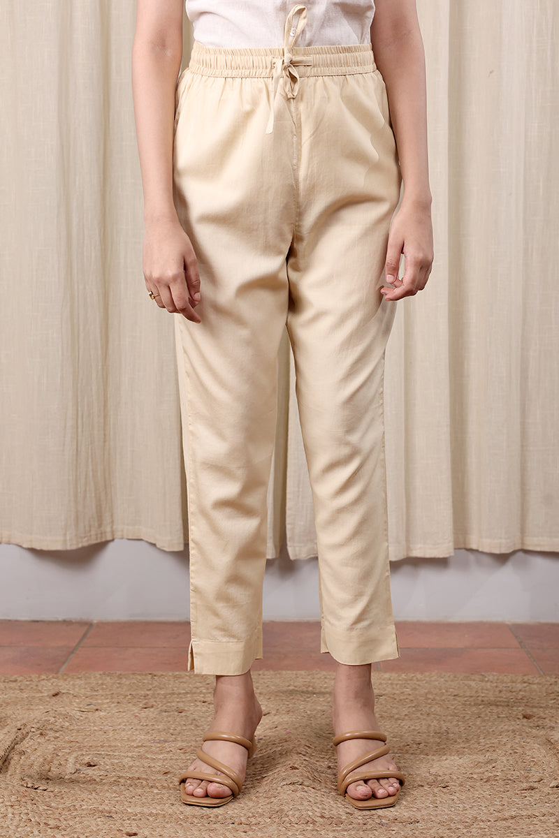 Beige Hand Dyed Cotton Satin Women Ankle Pant WAKPT252C34