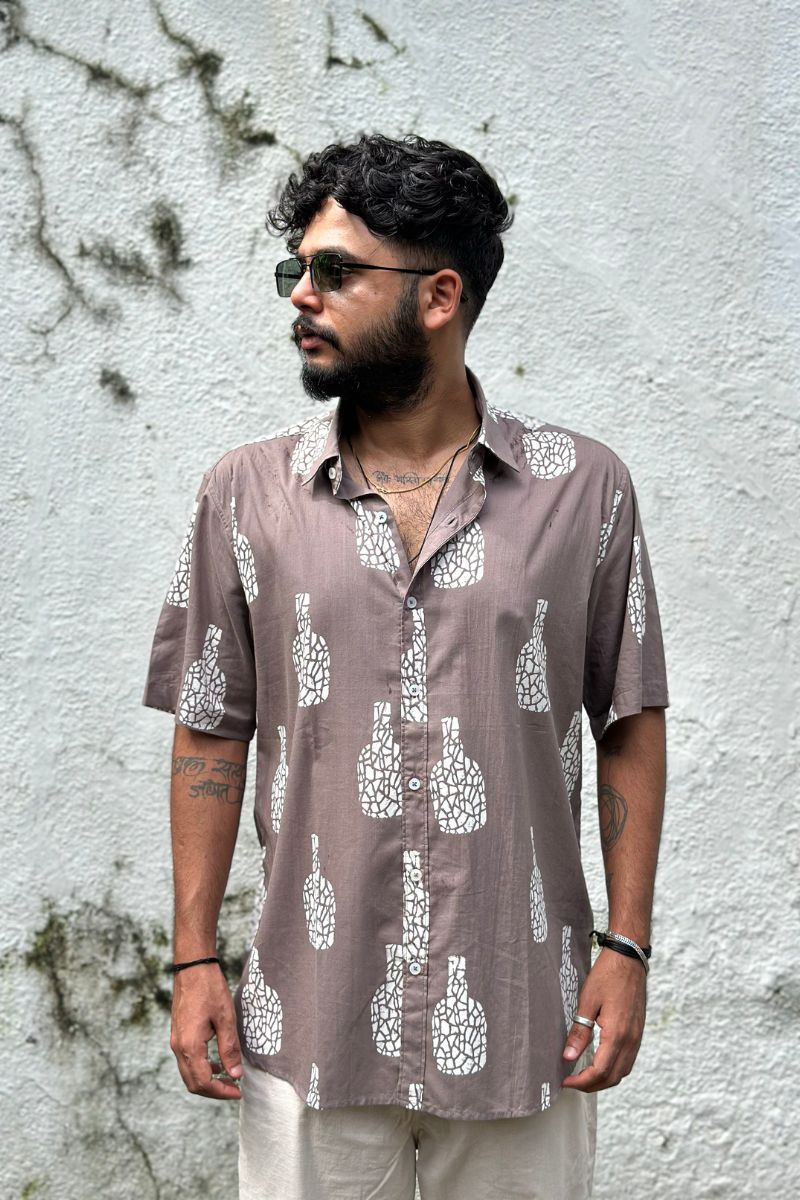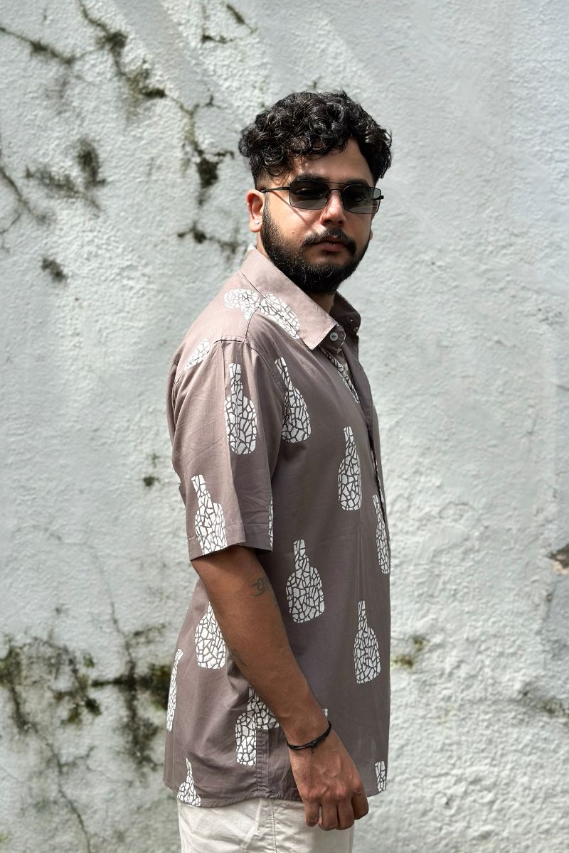 The Legend shirt in a new legendary colour. Crafted in soft cotton for all-day comfort, this shirt features a signature bottle print, making it the perfect blend of laid-back style and statement wear.
