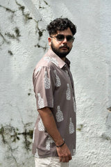 Grey Sanganeri Cotton Men Shirt Half Sleeves MSHHS251C35