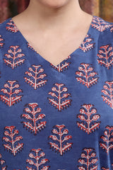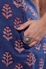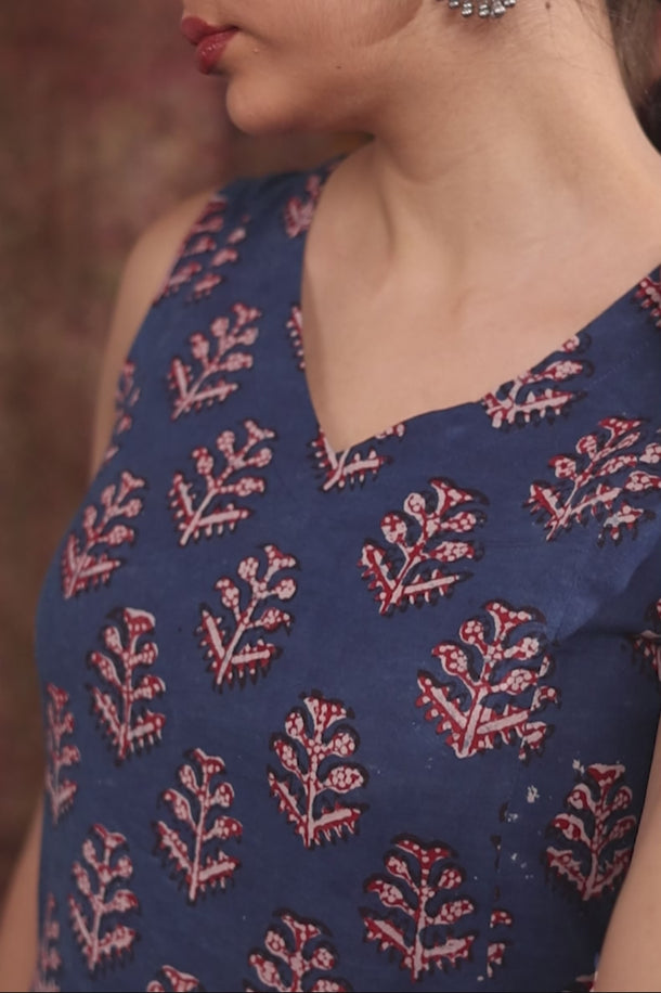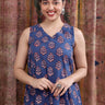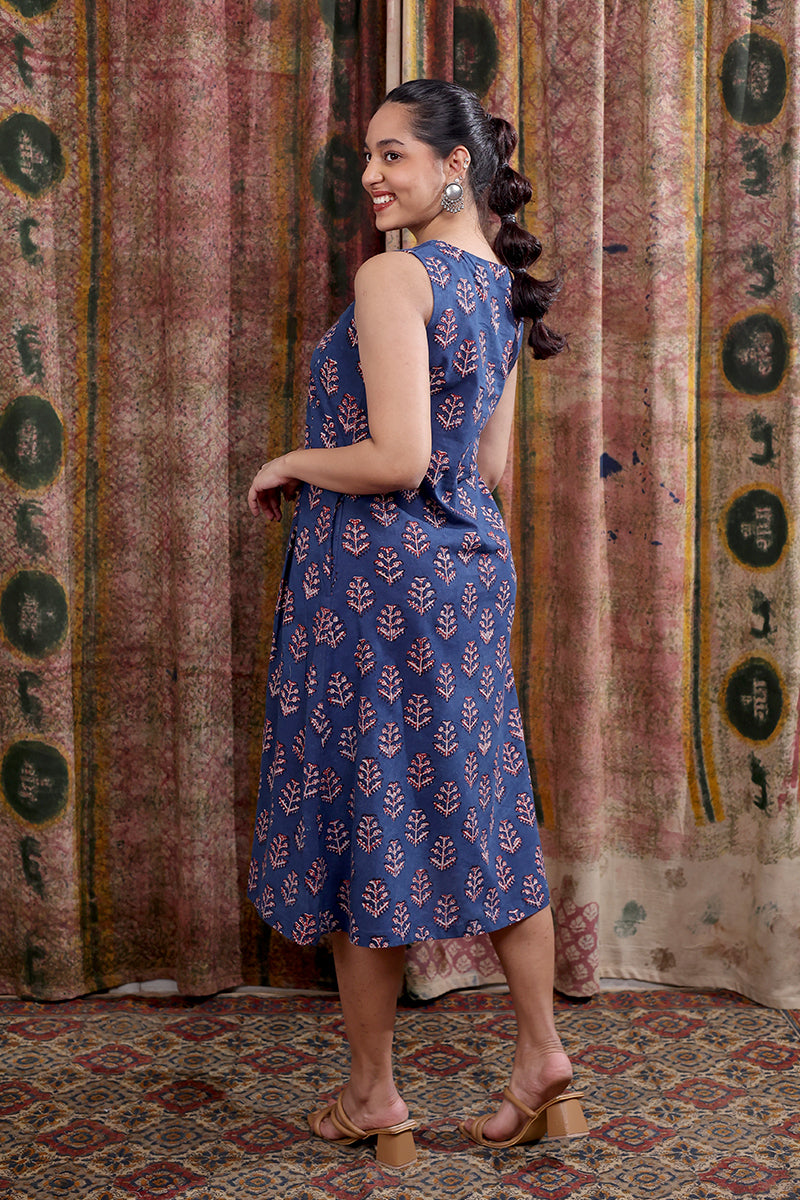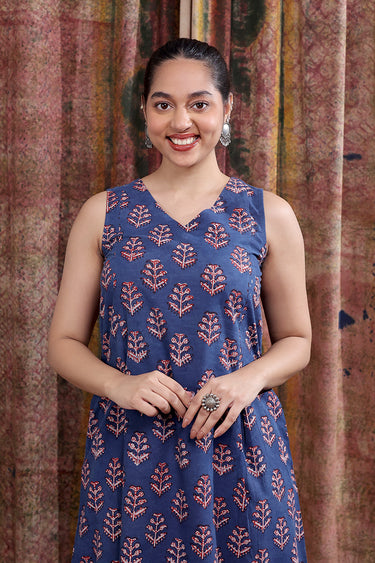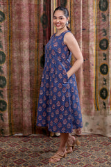 Indigo Dhabu Cotton Women Midi Dress Sleeveless WDRSL253C16