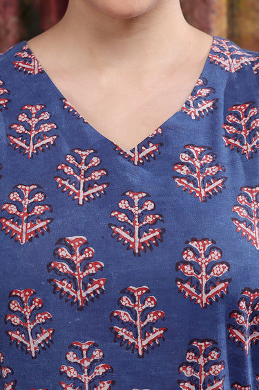 This elegant cotton midi dress features a handblock print with pockets on both sides for added comfort. From couch to café—effortless style all day!