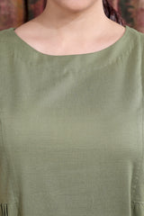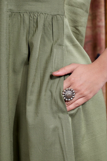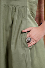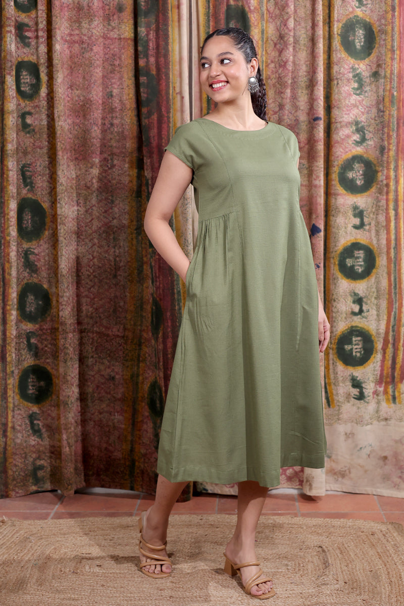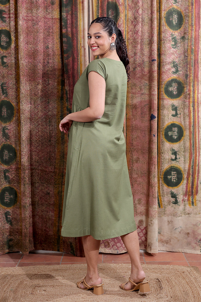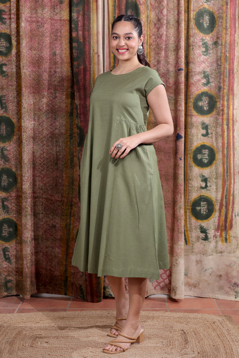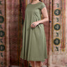 Green Hand Dyed Cotton Viscose Blend Women Midi Dress Short Sleeves WDRSS253C4