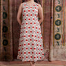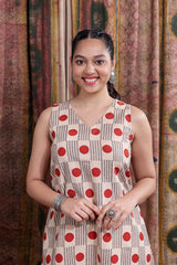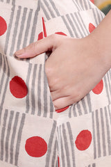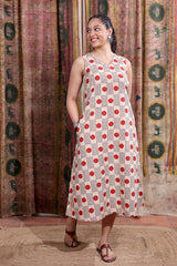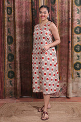 Red Grey Bagru Cotton Flax Women Midi Dress Sleeveless WDRSL12252