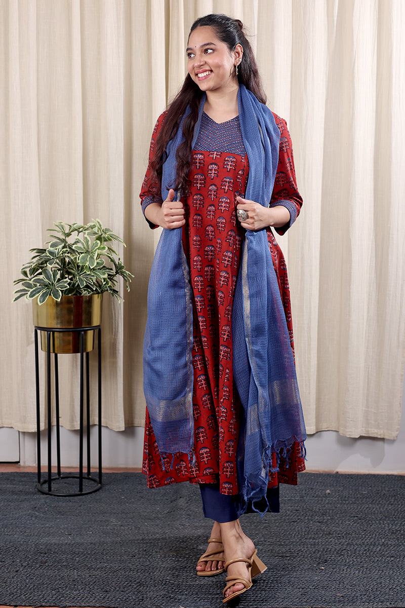 This hand dyed kota cotton silk dupatta — soft, airy, and effortlessly elegant. Pair it with our matching kurta for a complete, effortless look.
