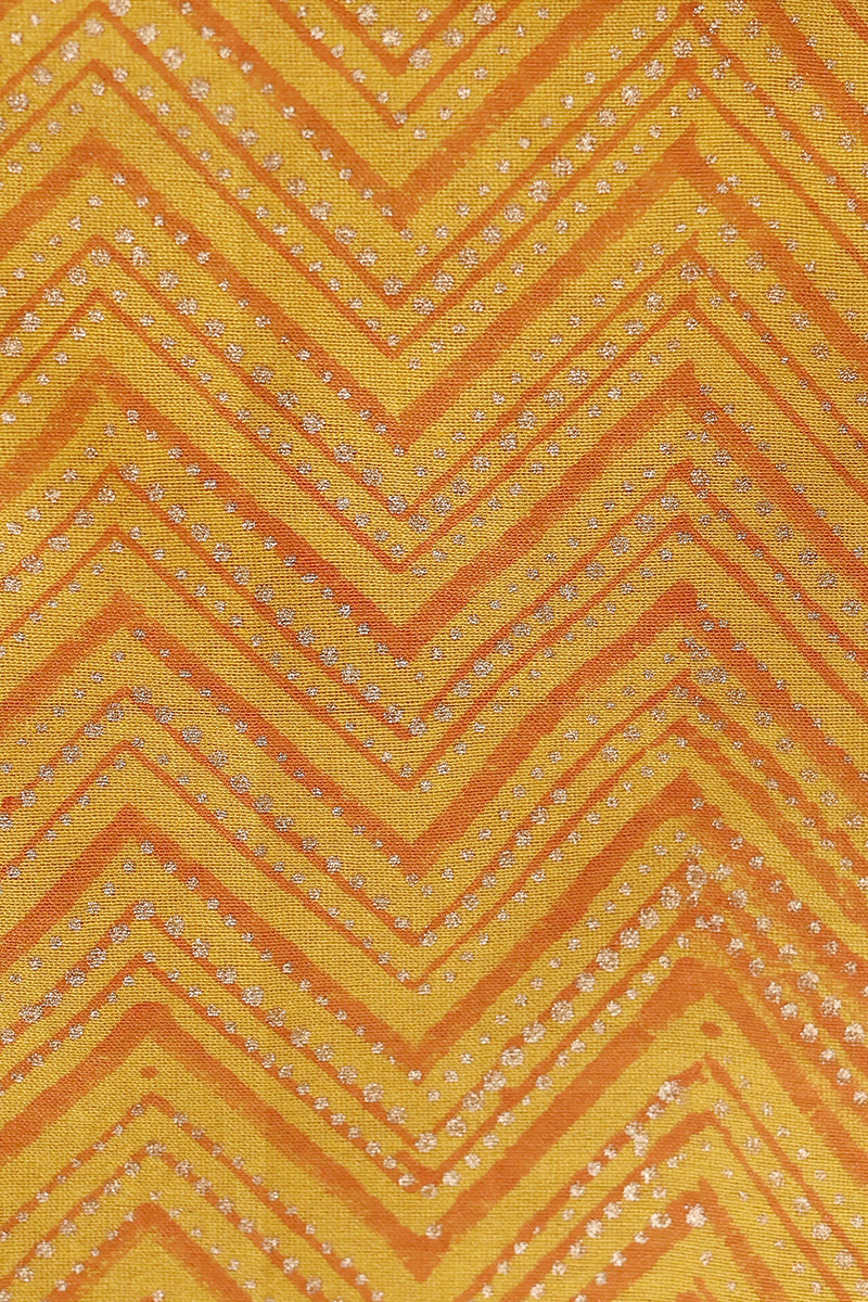 A warm mustard hue meets airy Chanderi silk in this festive dupatta. Vibrant orange hues, hand-block printed zigzag across the body—finished with zari detailing at the ends. Lightweight, graceful, and celebration-ready.