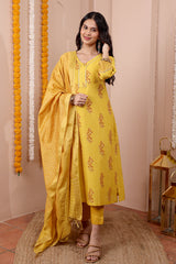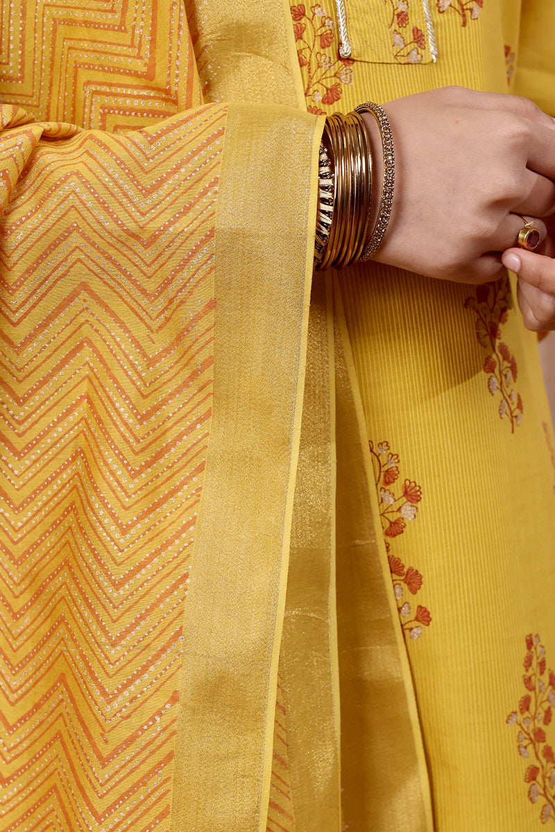 Mustard Sanganeri Chanderi Silk Dupatta DUPAT252C64