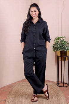 Black Hand Dyed Lyocell Linen Women Shirt Long Sleeves WSHLS251C6