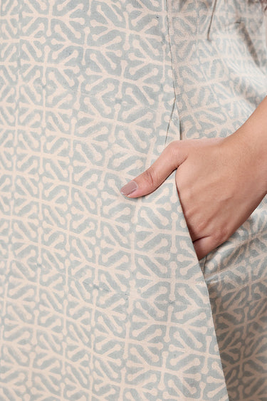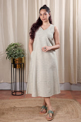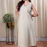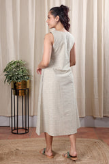 Grey Sanganeri Cotton Flax Women Midi Dress Sleeveless WDRSL252C4
