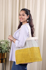 Ivory Hand Block Print Duck Cotton Tote Bag TOTBG252C11