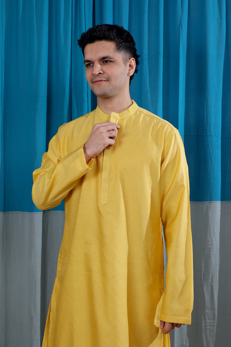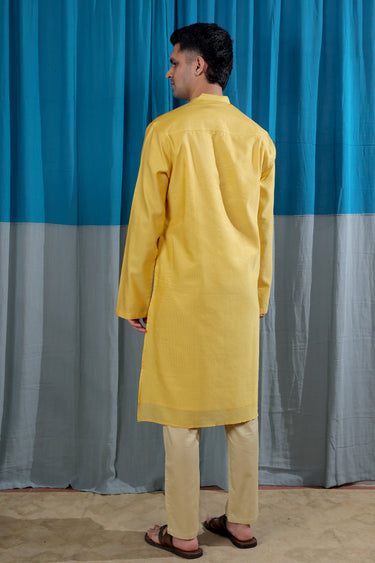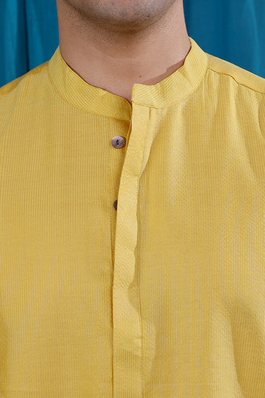 Royal Yellow Stripes Zari Chanderi Silk Men Long Kurta Full Sleeves MLKFS253C57