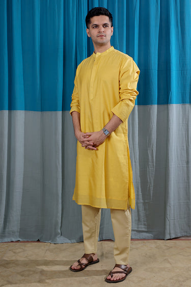 Experience timeless style and comfort with this classic men’s kurta. Features functional side pockets. Perfect for the festivities.