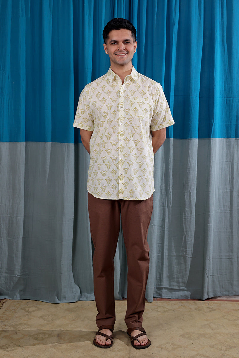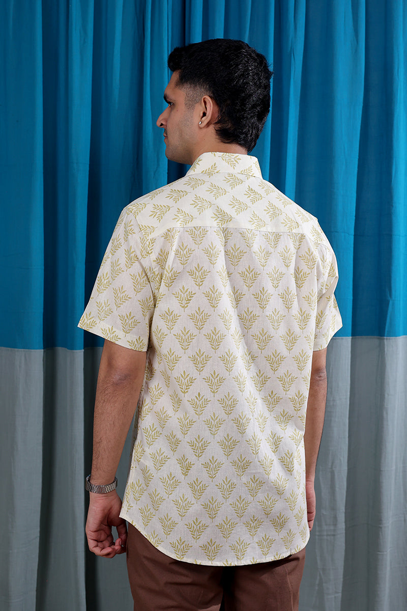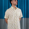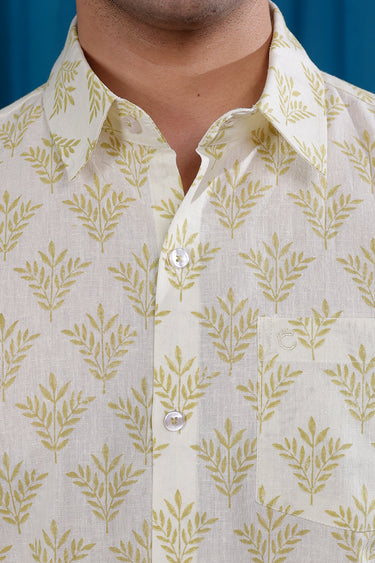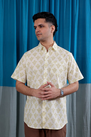 Yellow Sanganeri Natural Cotton Linen Men Shirt Half Sleeves MSHHS012615