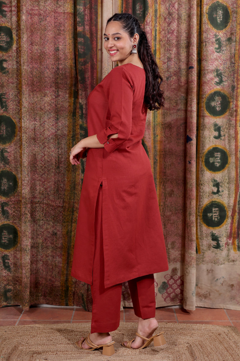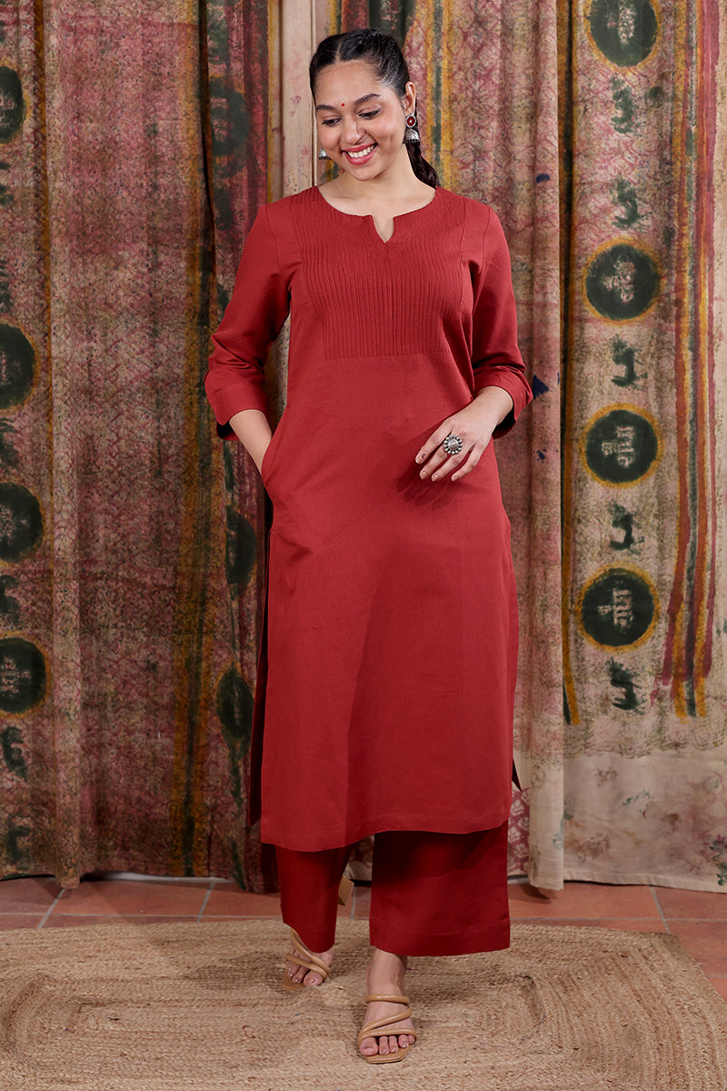 This soft, breathable hand dyed cotton linen kurta features a pintucks detailing and a side pocket on the right for added comfort. Pair it with our matching bottom for a look that’s effortlessly put-together.