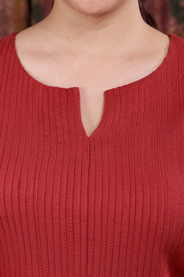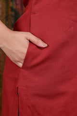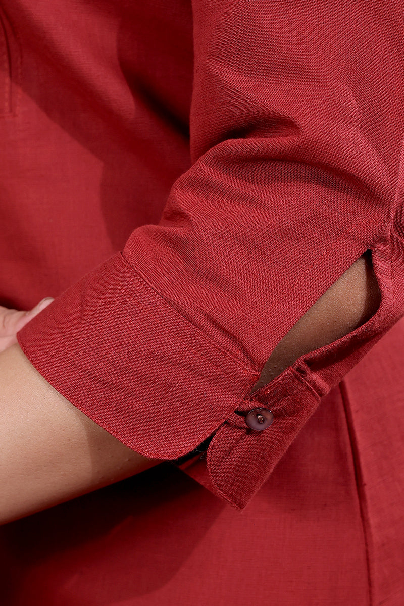 Maroon Hand Dyed Cotton Linen Women Long Kurta Long Sleeves WLKLS253C50