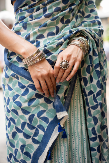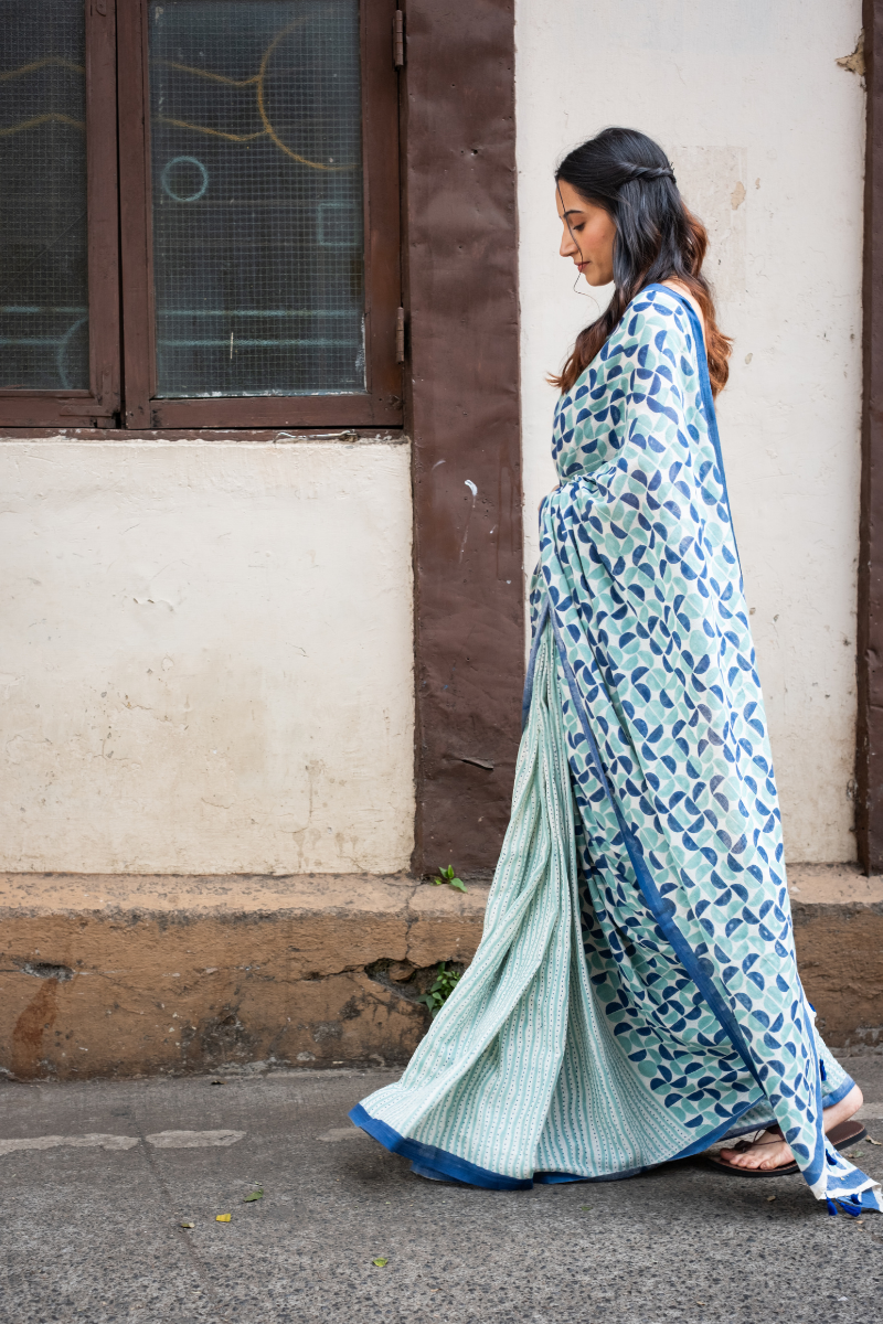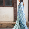 Green Blue Sanganeri Mul Cotton Linen Saree SAREE022628
