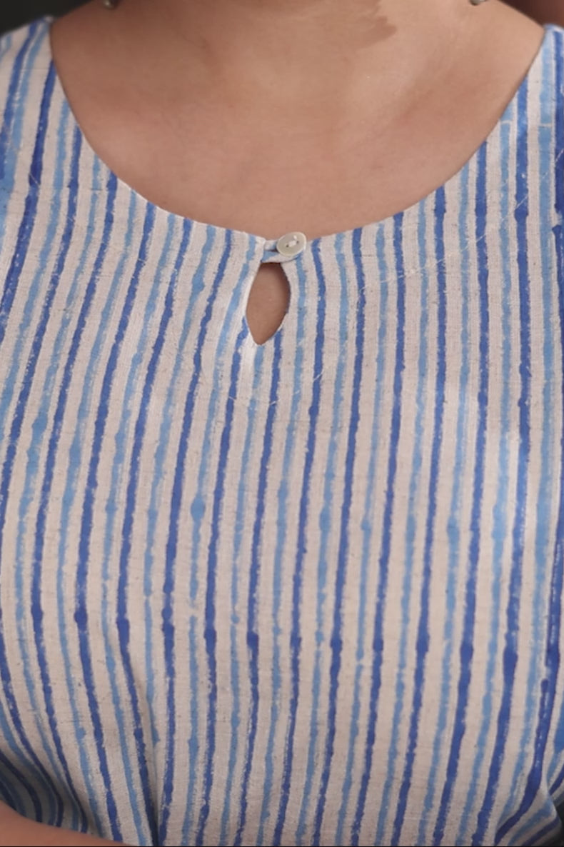 Blue Sanganeri Cotton Flax Women Kurti Long Sleeves WKILS253C62