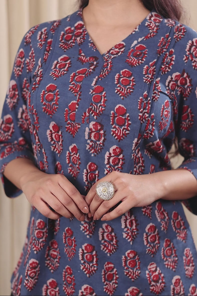Indigo Dhabu Cotton Women Kurti Long Sleeves WKILS253C32