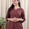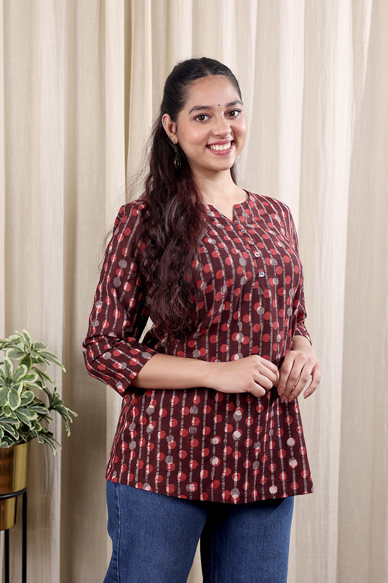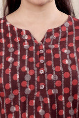 Brick Red Dhabu Cotton Checks Women Kurti Long Sleeves WKILS252C69