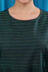 Forest Green Sttripes Zari South Cotton Women Kurti Long Sleeves WKILS122512