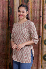 This elegant kurti features a Bagru handblock print. Made for every moment—light, soft, and effortlessly comfortable.
