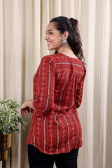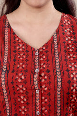 Rust Dhabu Cotton Women Kurti Long Sleeves WKILS252C89