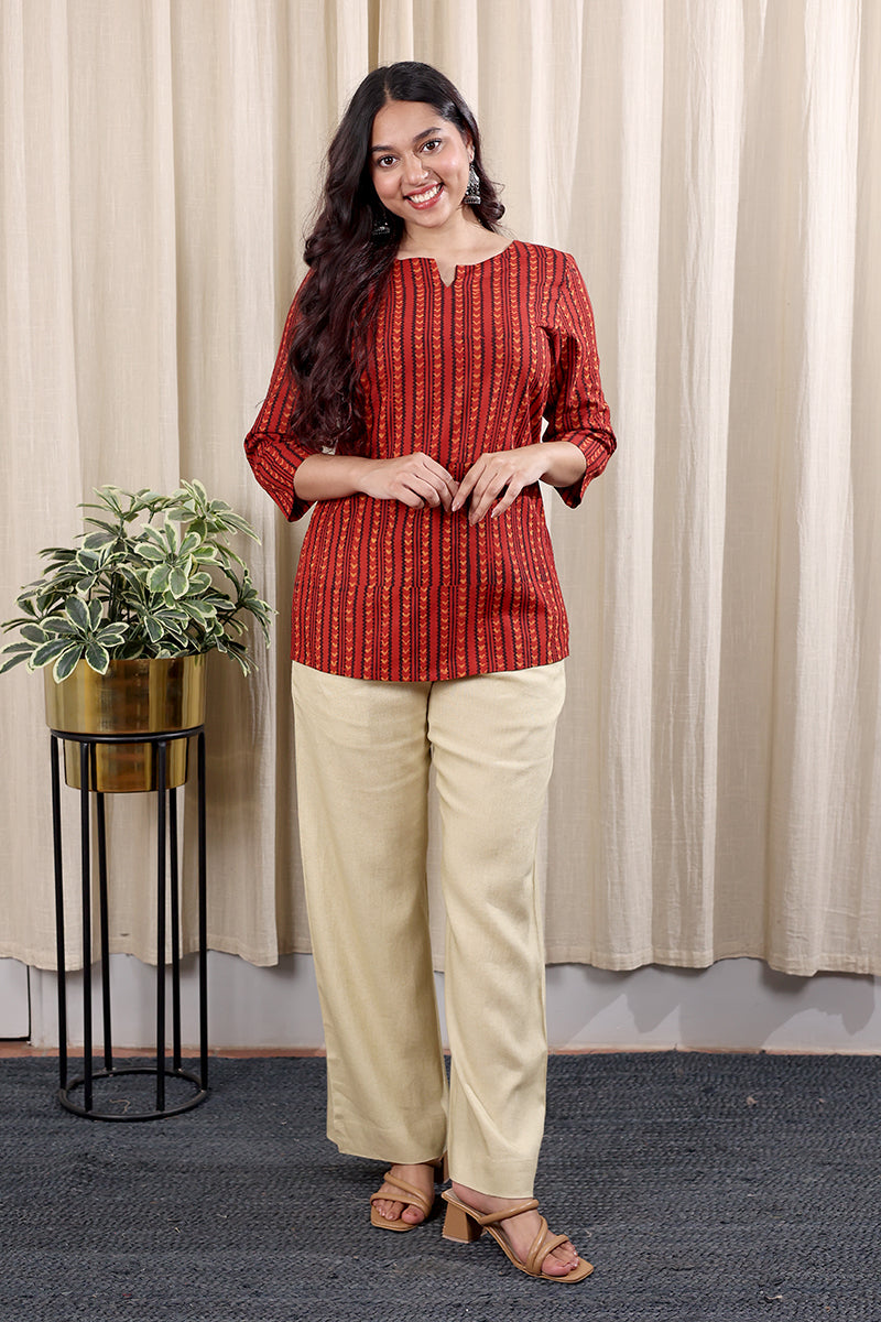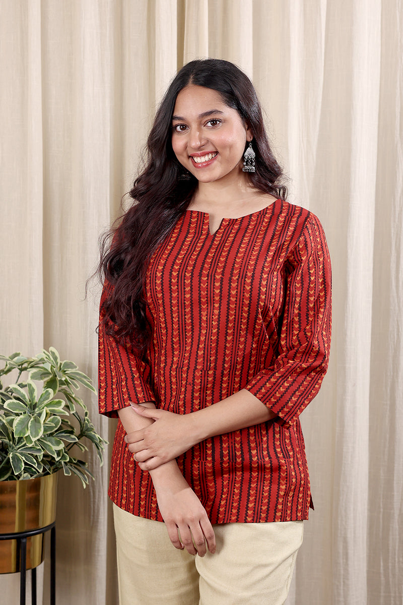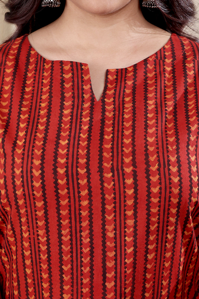 Rust Dhabu Cotton Women Kurti Long Sleeves WKILS253C21