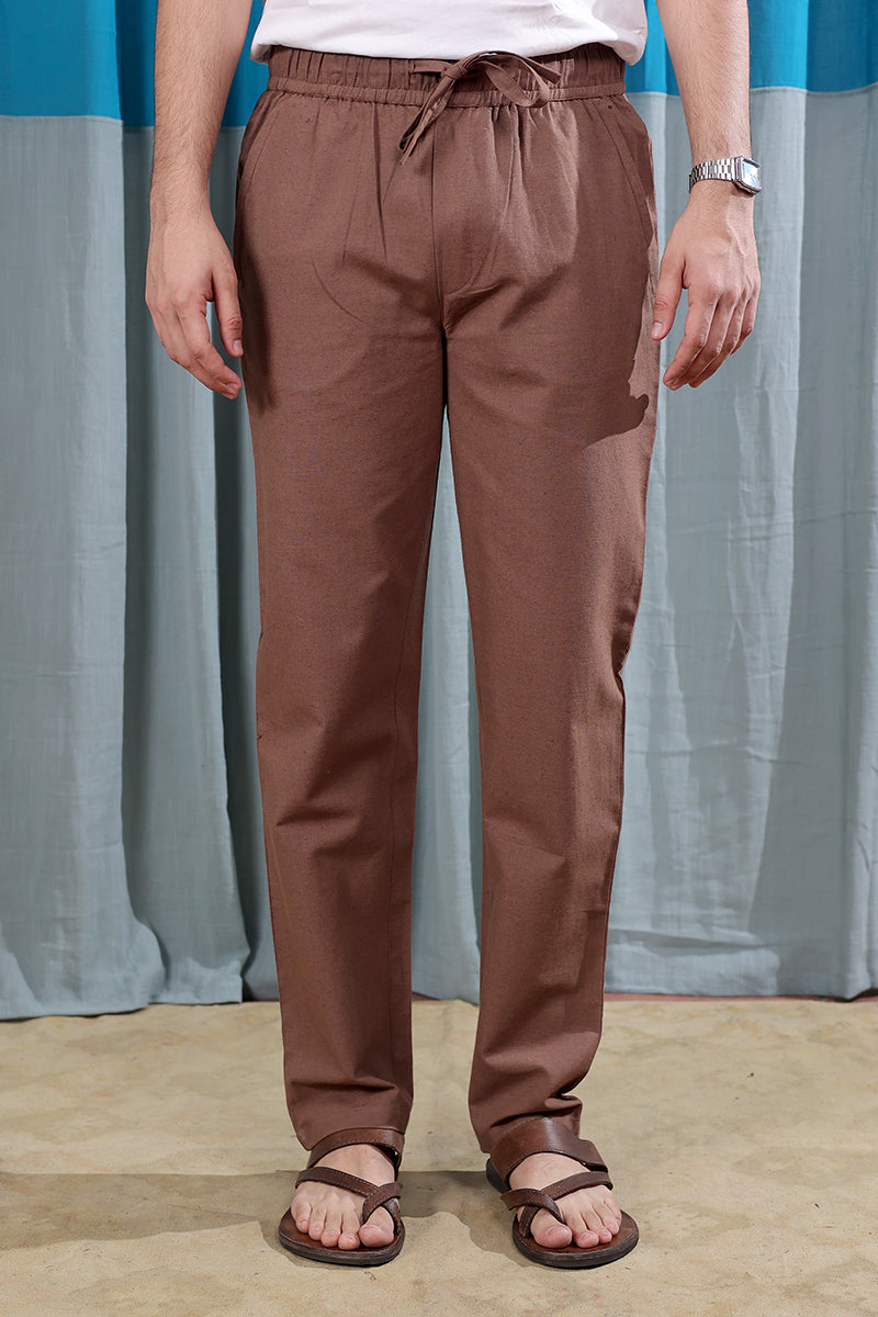 Earth Brown Dyed Soft Cotton Linen Men Drawstring Pant