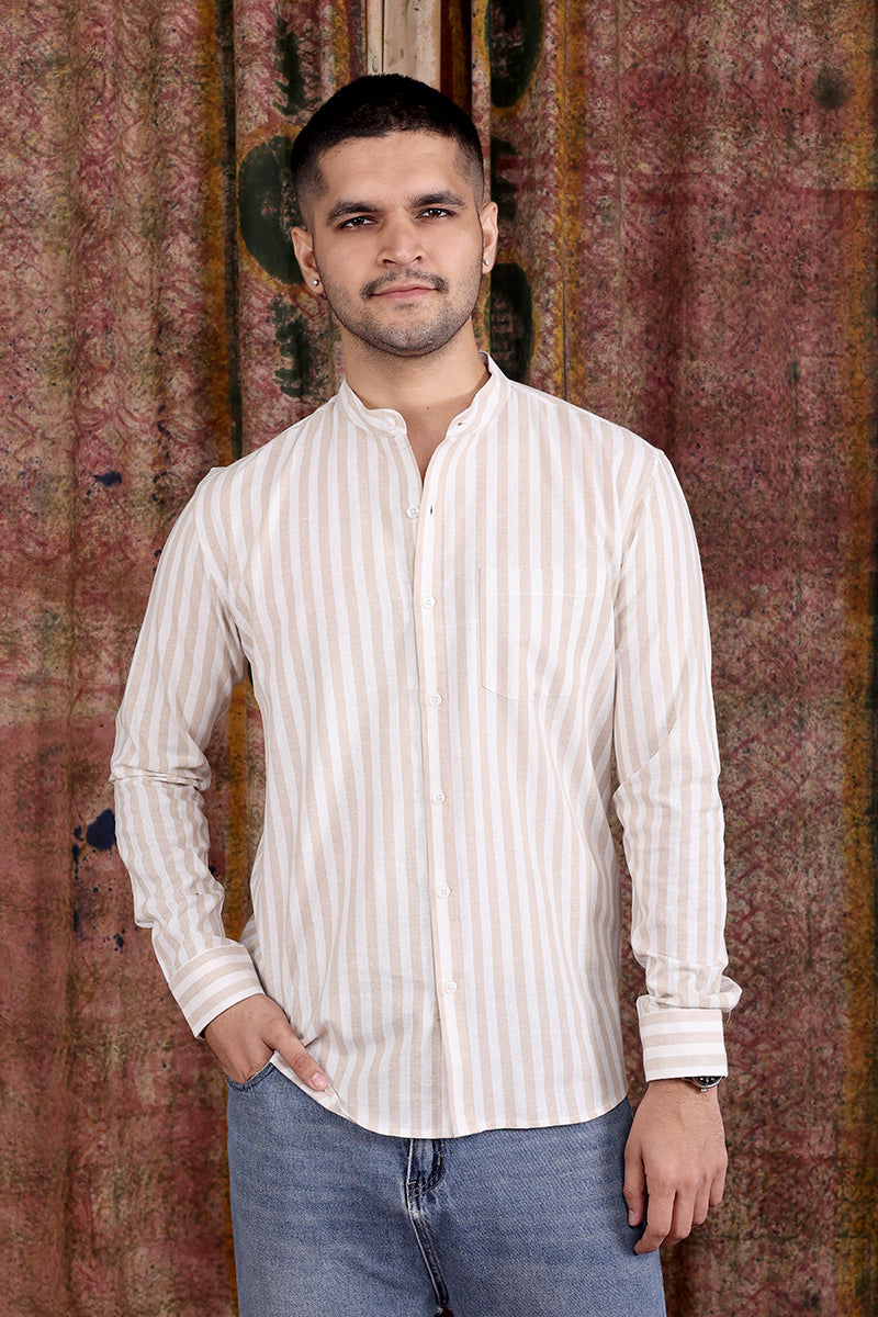 Beige Stripes Amber Cotton Men Shirt Full Sleeves MSHFS251C6
