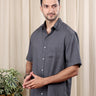 Charcoal Hand Dyed Rayon Flax Men Shirt Half Sleeves MSHHS252C38