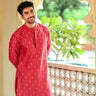 Dark Pink Jaquard Banarasi Silk Men Long Kurta Full Sleeves MLKFS252C33