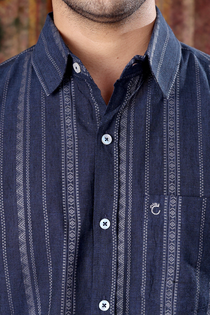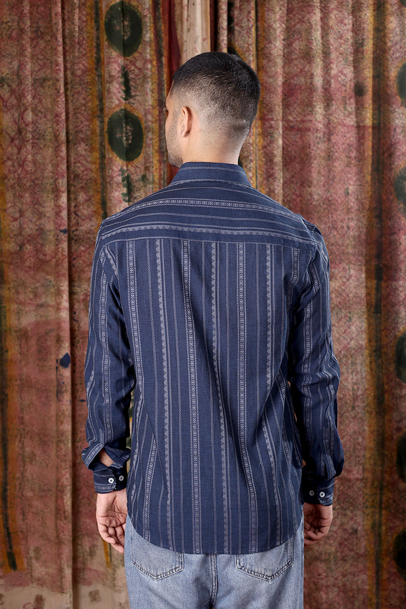 Denim Blue Dobby South Cotton Men Shirt Full Sleeves MSHFS251C14