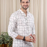 Off White Checks Buta South Cotton Men Short Kurta Full Sleeves MSKFS252C55