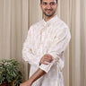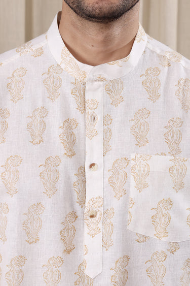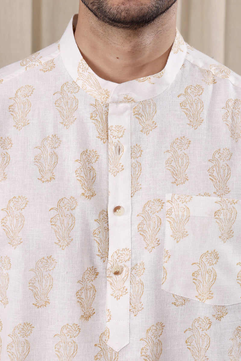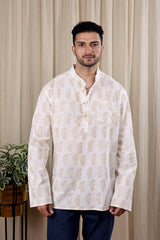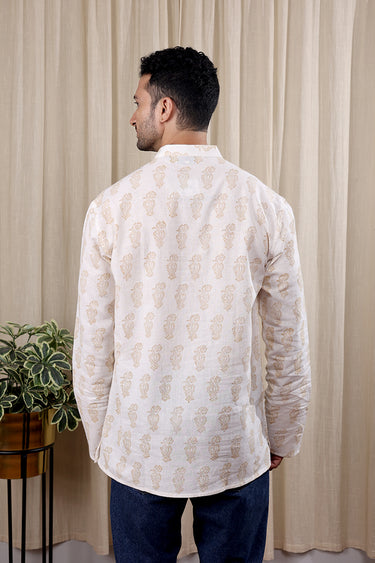 Off White Sanganeri Cotton Linen Men Short Kurta Full Sleeves MSKFS252C33