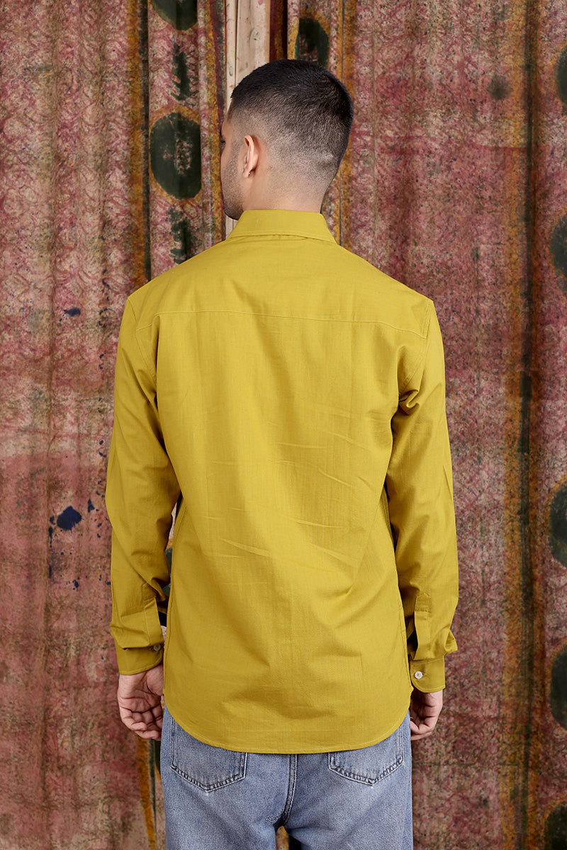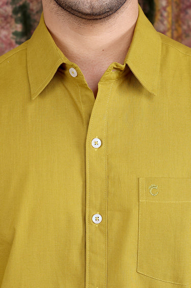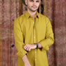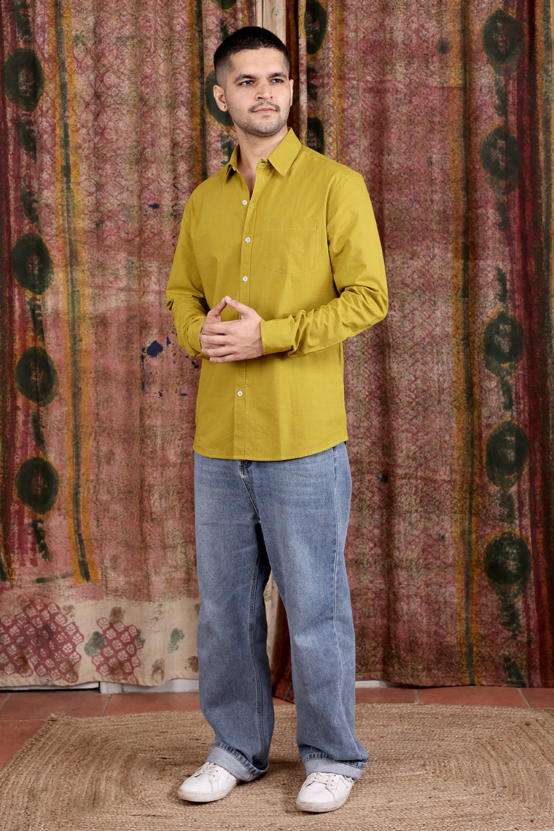 Olive Green Hand Dyed Cotton Slub Men Shirt Full Sleeves MSHFS251C20