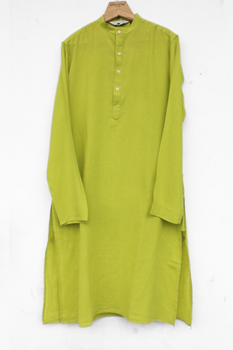 Light Green Hand Dyed Lyocell Linen Men Long Kurta Full Sleeves MLKFS092417