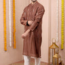 Brown Jaquard Buta Banarasi Silk Men Long Kurta Full Sleeves MLKFS252C56