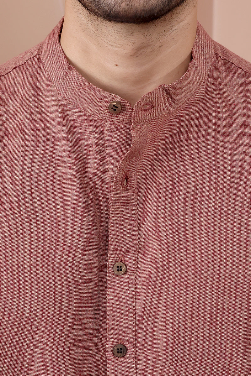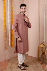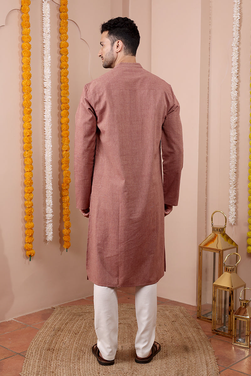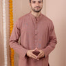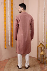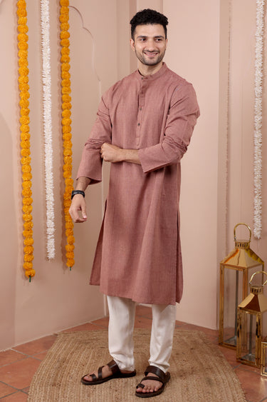 Brown Yarn Dyed Amber Cotton Men Long Kurta Full Sleeves MLKFS252C26