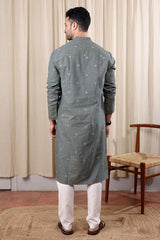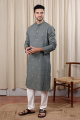 Experience timeless style and comfort with this classic men’s kurta. Features functional side pockets. Perfect for the festivities.