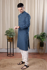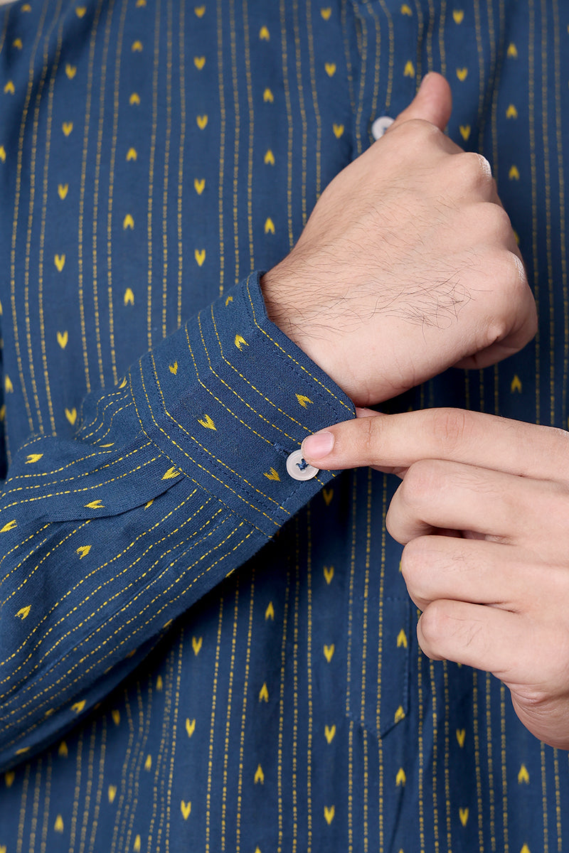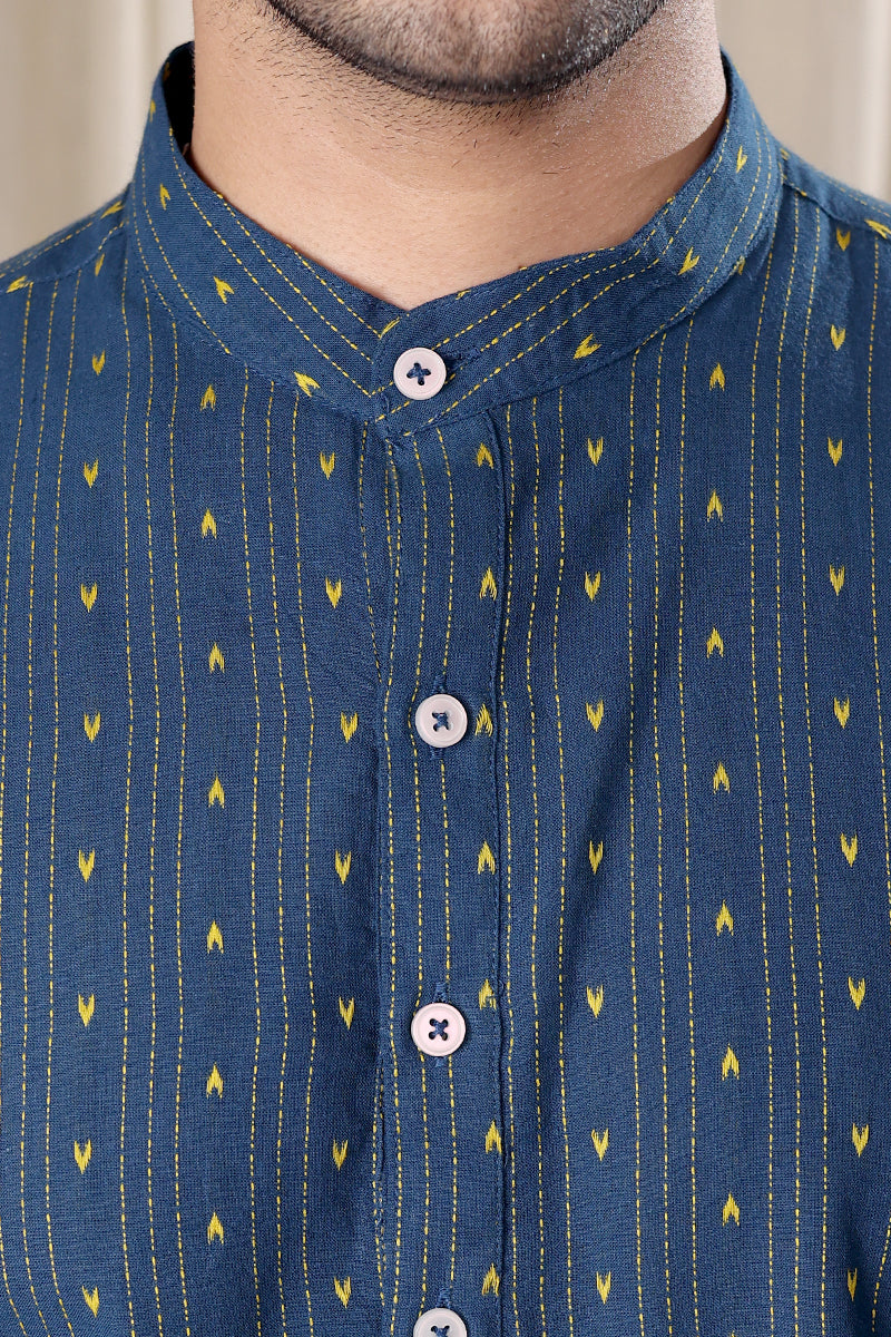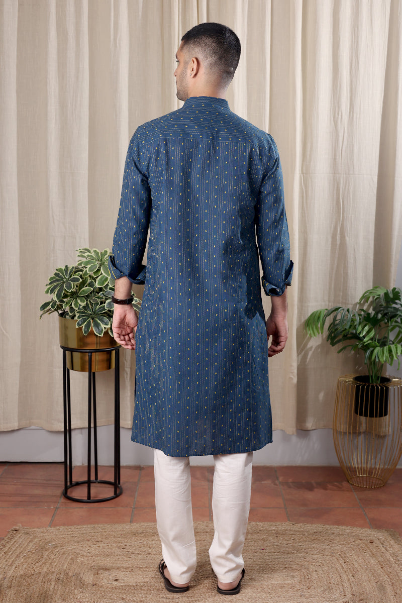 Dark Blue Dobby Stripes South Cotton Men Long Kurta Full Sleeves MLKFS251C6