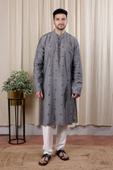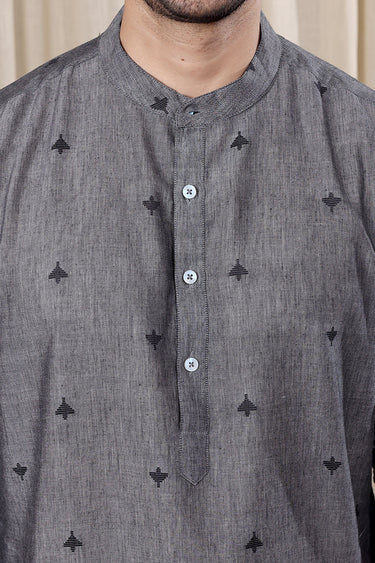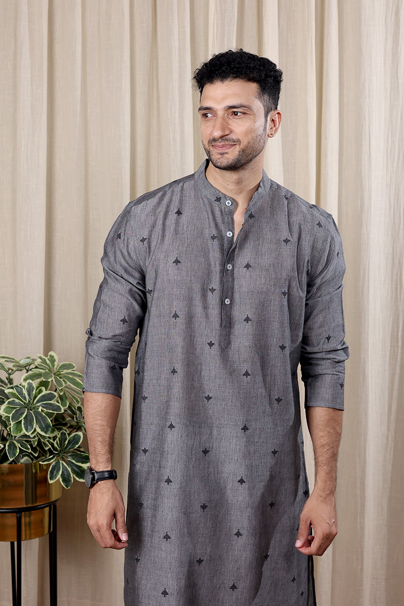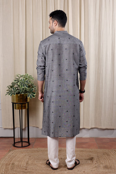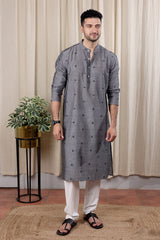 Grey Dobby South Cotton Men Long Kurta Full Sleeves MLKFS251C40