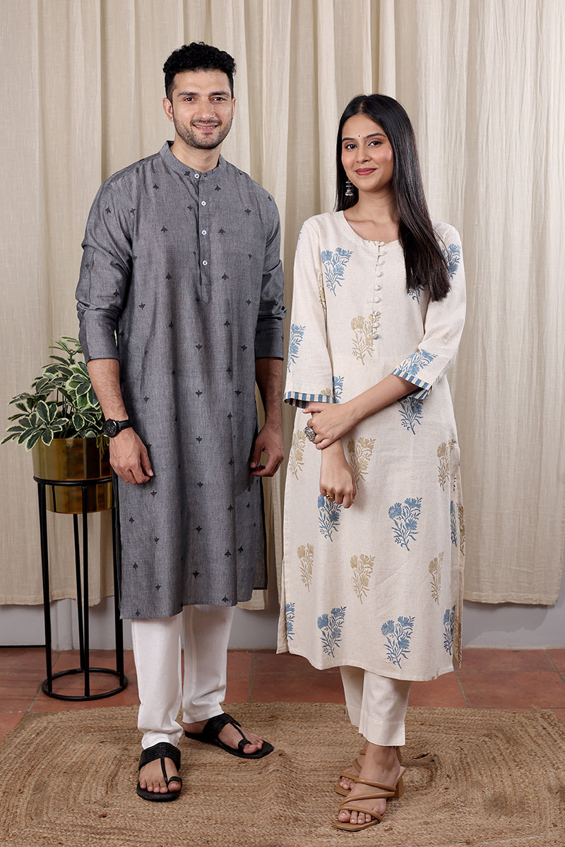 Experience timeless style and comfort with this classic men’s kurta. Features functional side pockets. Perfect for the festivities.