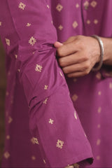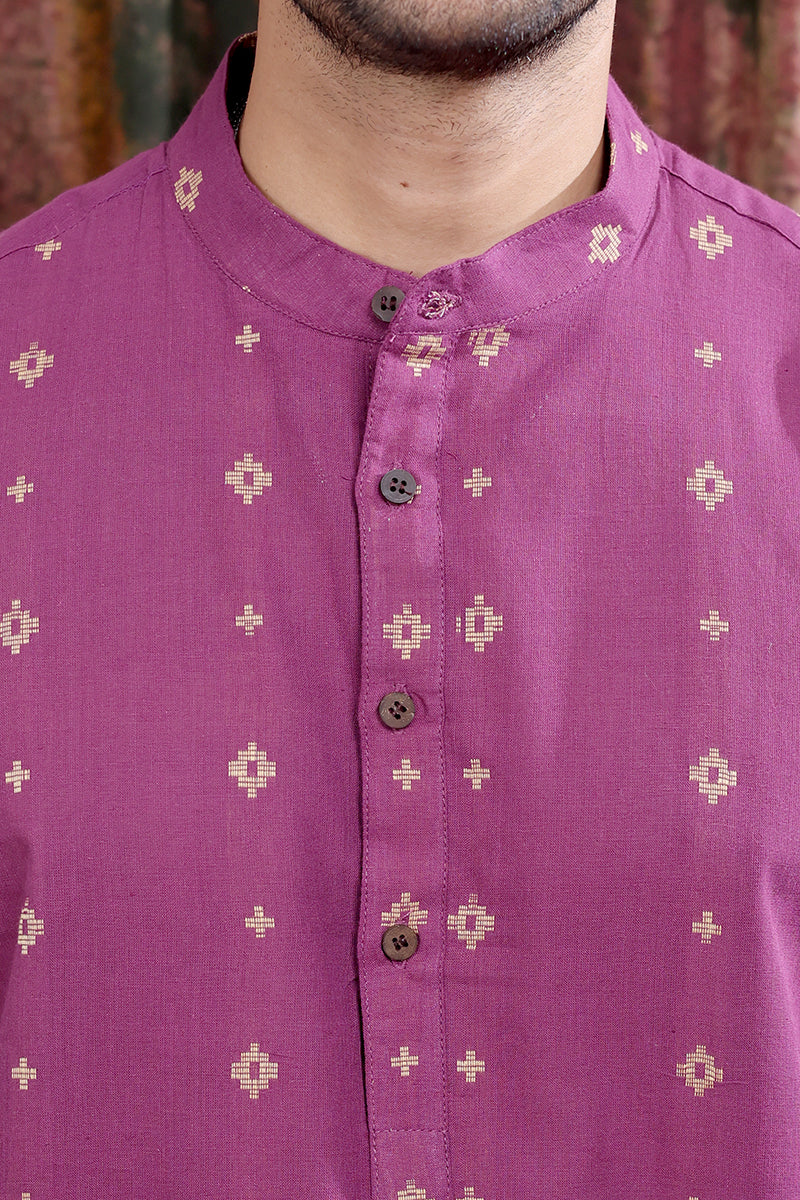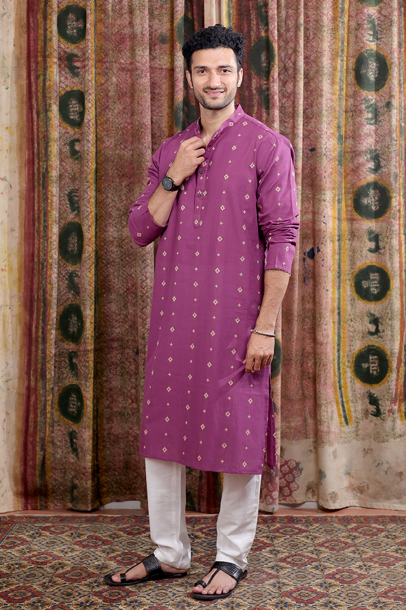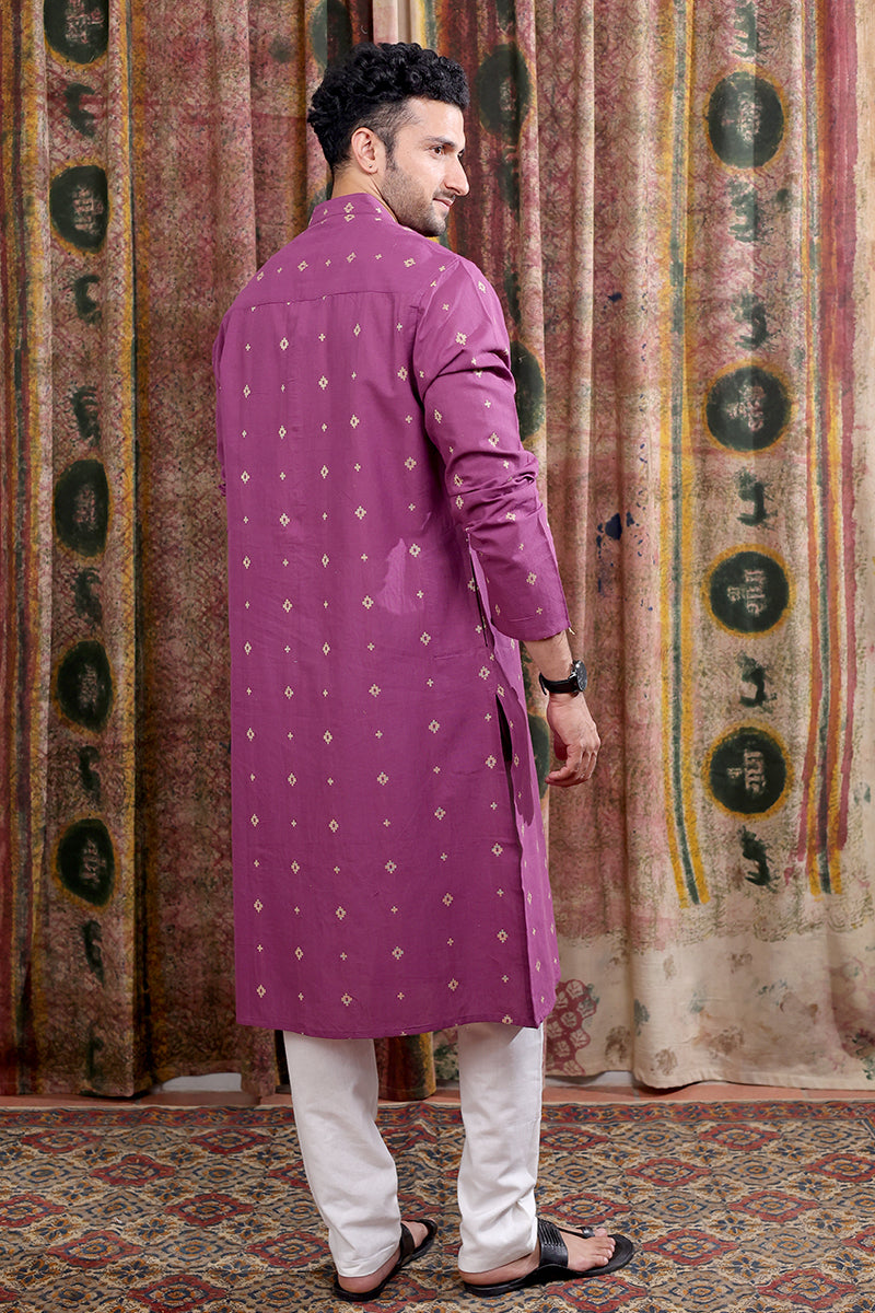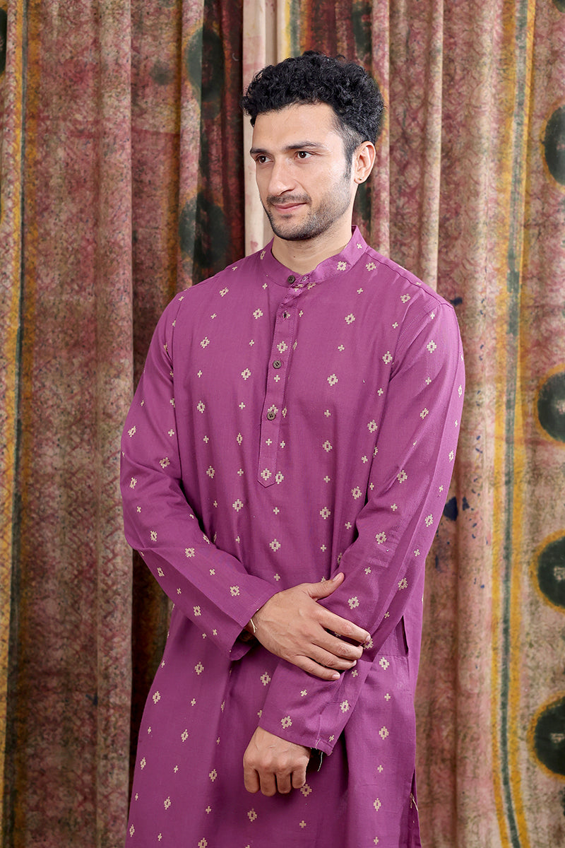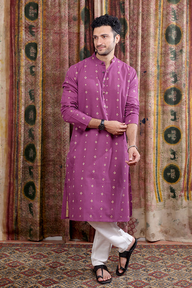Purple Dobby Buti South Cotton Men Long Kurta Full Sleeves MLKFS253C5
