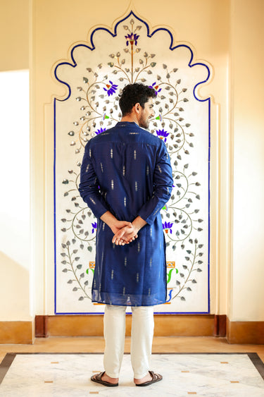 Royal Blue Jaquard Buta Banarasi Silk Men Long Kurta Full Sleeves MLKFS252C44